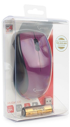 Мышь Gembird 320 3 кн, 1000 DPI, фиолетовый, беспроводная, батарейки в комплекте, блистер (1/100)