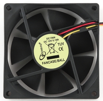 Размер вентилятора: 80x80x25 мм. Датчик оборотов. Питание: 12V.