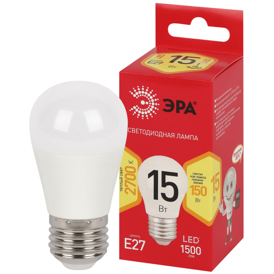 Лампа диодная шар G45 15Вт Е27 2700К 1500Лм Эра Red Line (10)