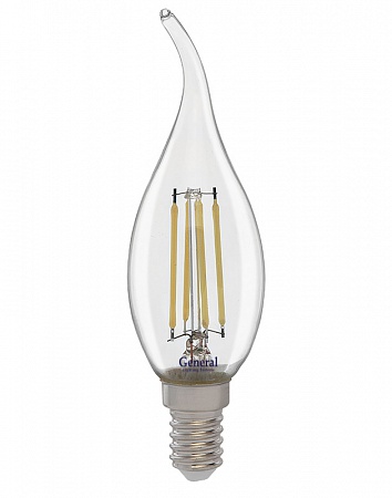 Лампа филамент свеча на ветру 15Вт Е14 2700К 1050Лм General (10/100)