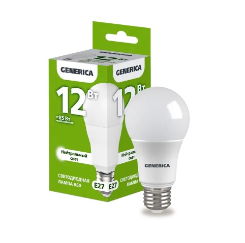 Лампа диодная A60 12Вт Е27 4000К 1200Лм IEK GENERICA (10/100)