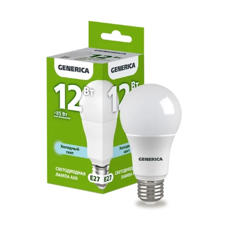 Лампа диодная A60 12Вт Е27 6500К 1200Лм IEK GENERICA (10/100)