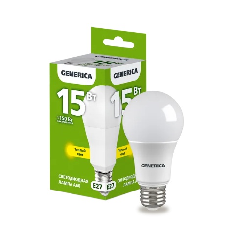 Лампа диодная A60 15Вт Е27 3000К 1500Лм IEK GENERICA (10/100)
