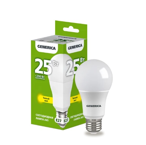 Лампа диодная A65 25Вт Е27 3000К 2500Лм IEK GENERICA (10/100)