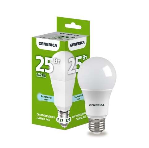 Лампа диодная A65 25Вт Е27 6500К 2500Лм Generica (10/100)