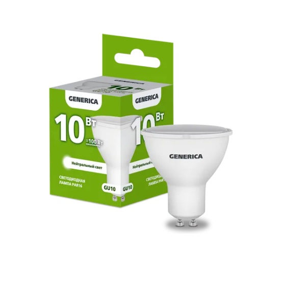 Лампа диодная MR16 GU10 10Вт 4000К 1000Лм IEK GENERICA (10/100)
