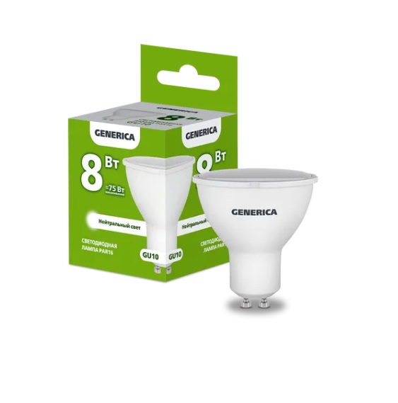 Лампа диодная MR16 GU10 8Вт 4000К 800Лм IEK GENERICA (10/100)