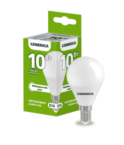 Лампа диодная шар G45 10Вт Е14 4000К 1000Лм IEK GENERICA (10/100)
