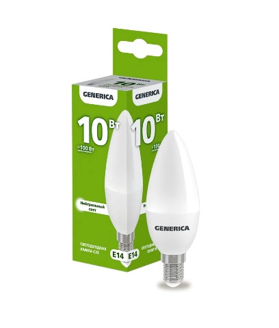 Лампа диодная свеча 10Вт Е14 4000К 1000Лм Generica (10/100)