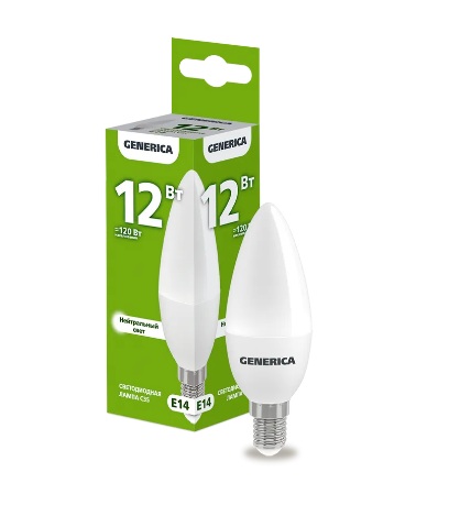 Лампа диодная свеча 12Вт Е14 4000К 1200Лм IEK GENERICA (10/100)