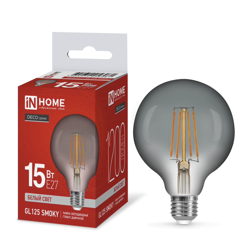 Лампа филамент GL125 smoky 15Вт E27 4000К 1200Лм дымчатая InHome