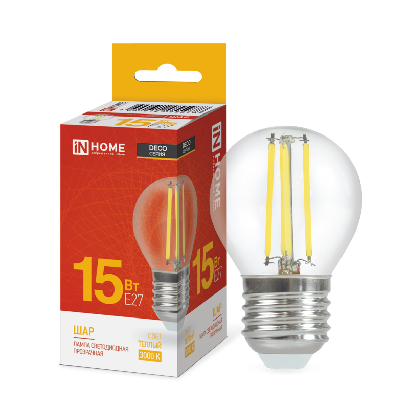 Лампа филамент шар G45 15Вт Е27 3000К 1435Лм InHome (10)