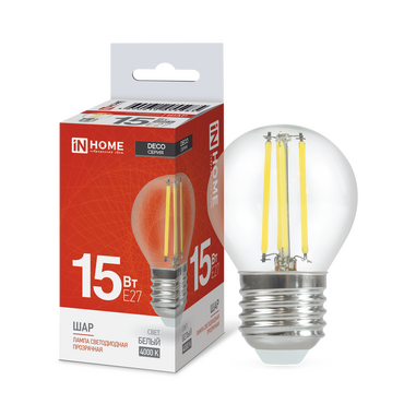 Лампа филамент шар G45 15Вт Е27 4000К 1435Лм InHome (10)