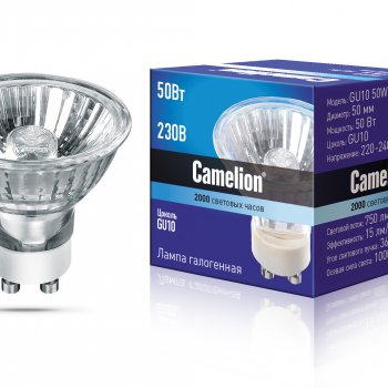 Лампа галогенная GU10 220В 50Вт Camelion (10/200)