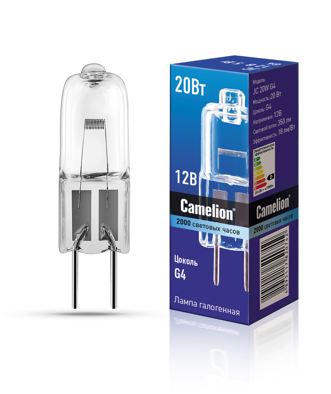 Лампа галогенная JC 12В 20Вт G4 капсула Camelion (100)