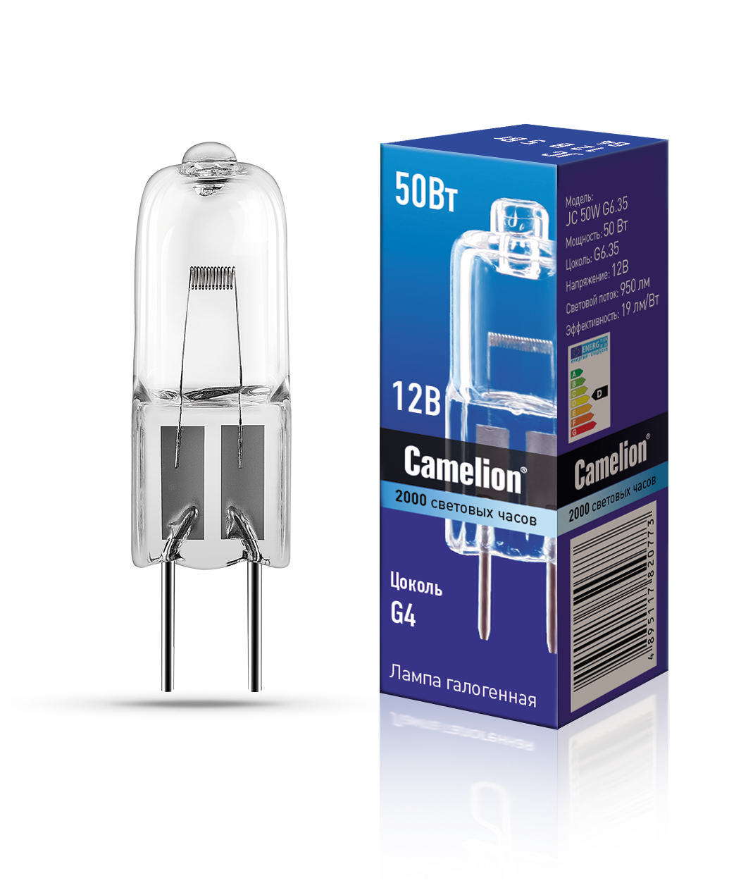 Лампа галогенная JC 12В 50Вт G6.35 капсула Camelion (100)