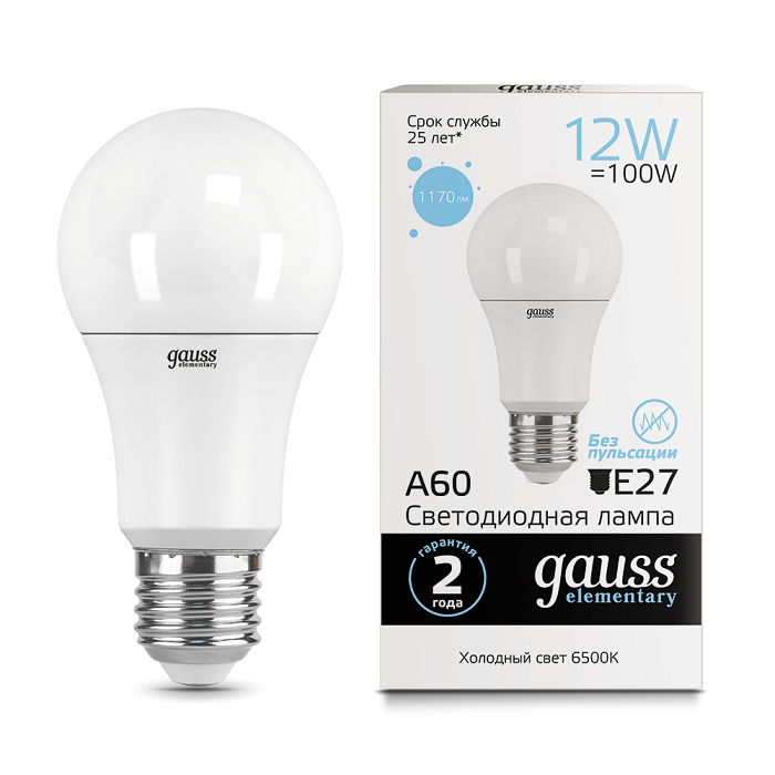 Лампа диодная A60 12Вт Е27 4100К 1150Лм Gauss Elementary (10/50)