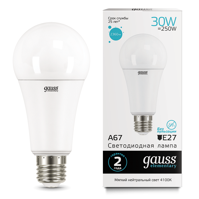 Лампа диодная A67 30Вт Е27 4100К 2360Лм Gauss Elementary (10/50)