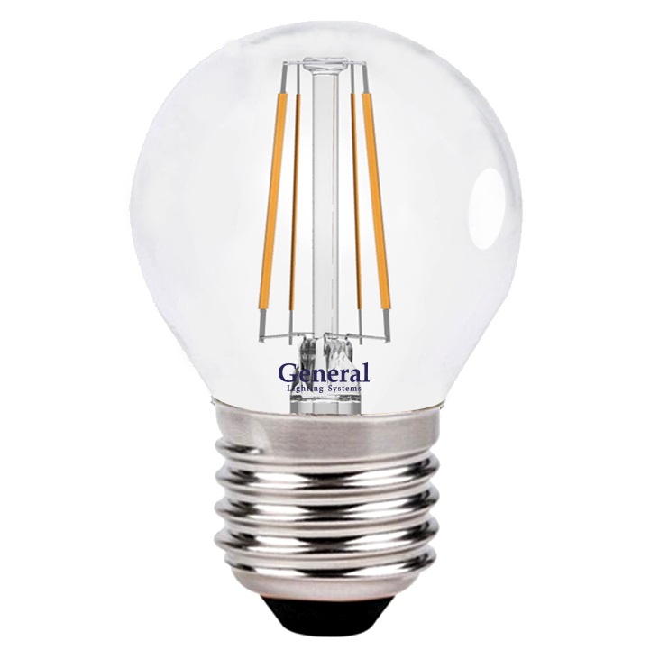 Лампа филамент шар G45 7Вт Е27 2700К 520Лм General (10/100)