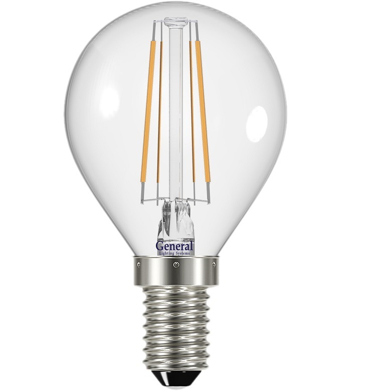 Лампа филамент шар G45 8Вт Е14 6500К 660Лм General (10/100)