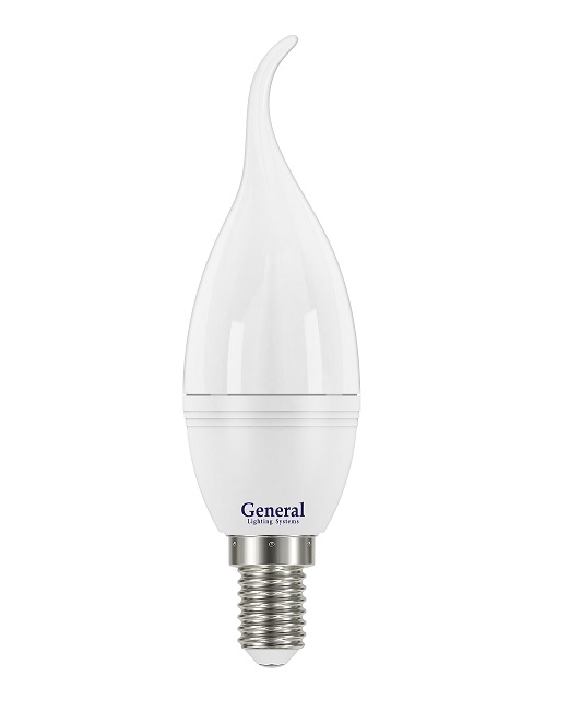 Лампа диодная свеча на ветру 7Вт Е14 6500К 570Лм General (10/100)