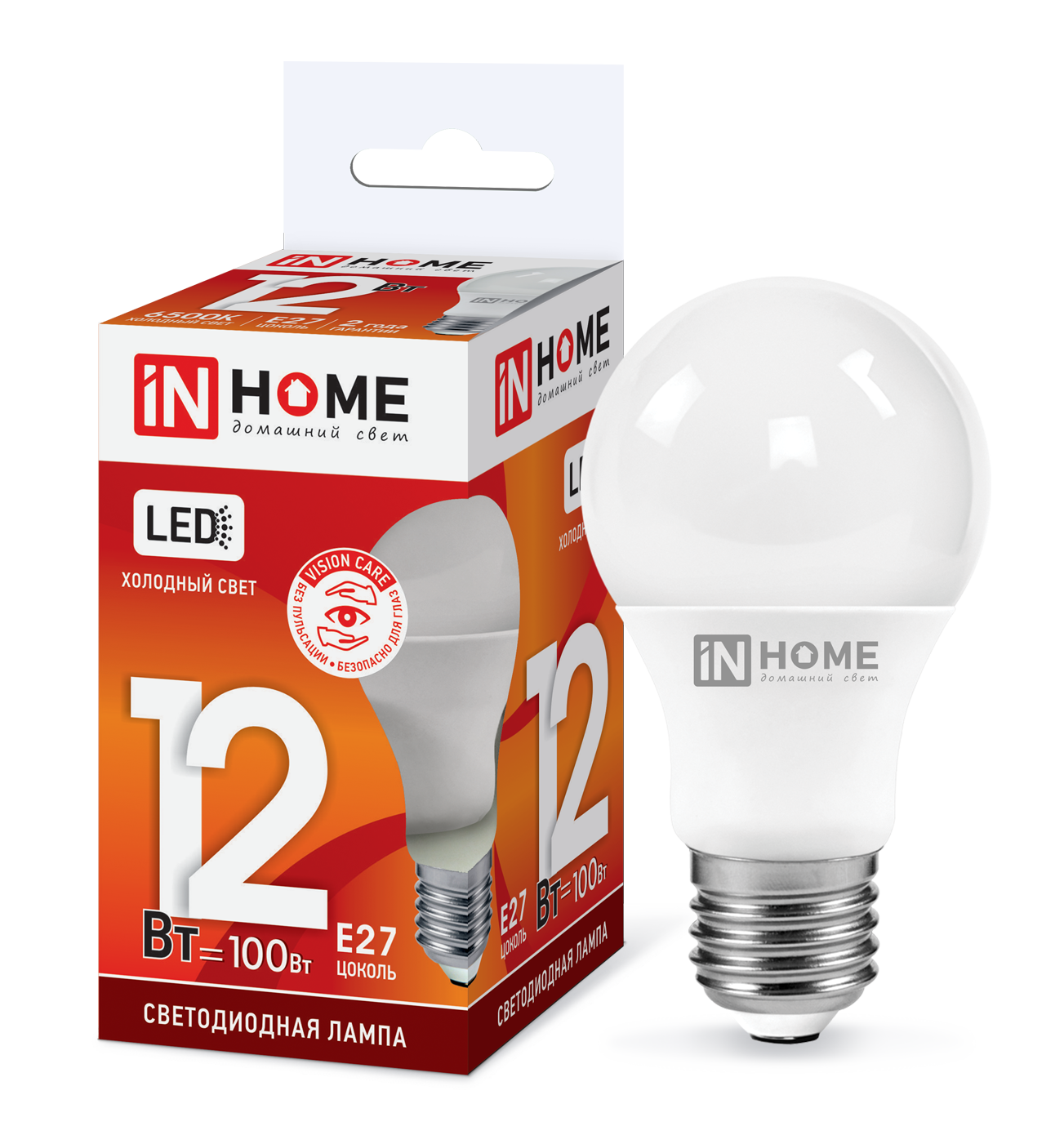 Лампа диодная A60 12Вт Е27 6500К 1140Лм InHome (10)