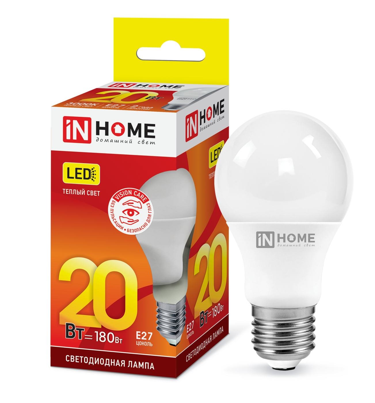 Лампа диодная A60 20Вт Е27 3000К 1800Лм InHome (10)