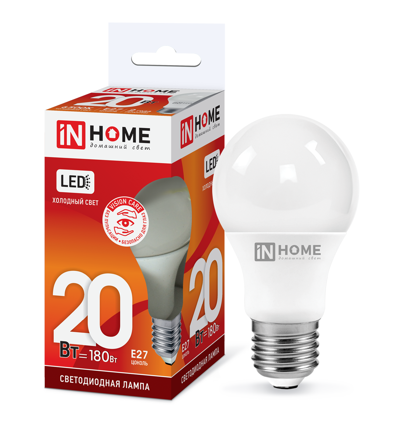 Лампа диодная A60 20Вт Е27 6500К 1900Лм InHome (10)