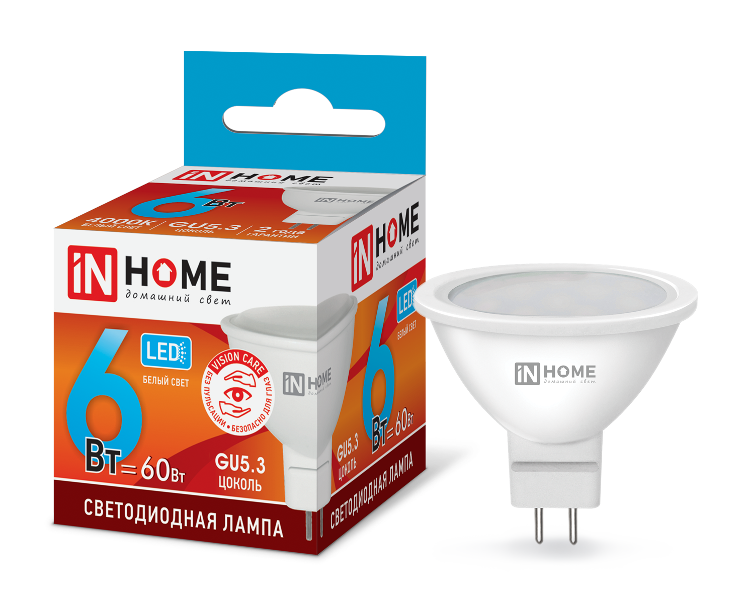 Лампа диодная MR16 GU5.3 6Вт 4000К 480Лм InHome (10)