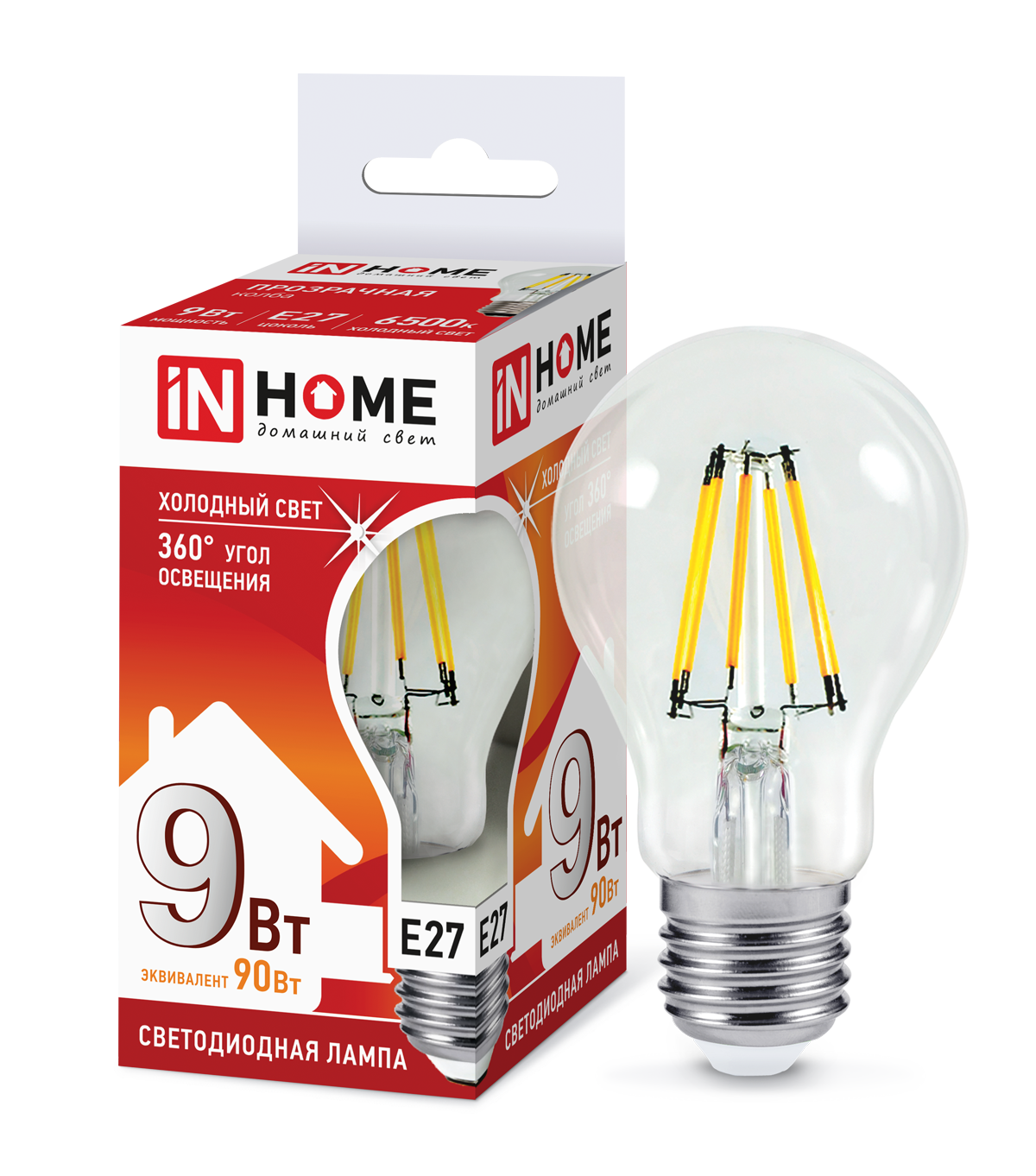 Лампа филамент A60 9Вт Е27 6500К 810Лм InHome (10)