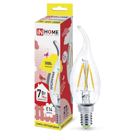Лампа филамент свеча на ветру 7Вт Е14 3000К 630Лм InHome (10)