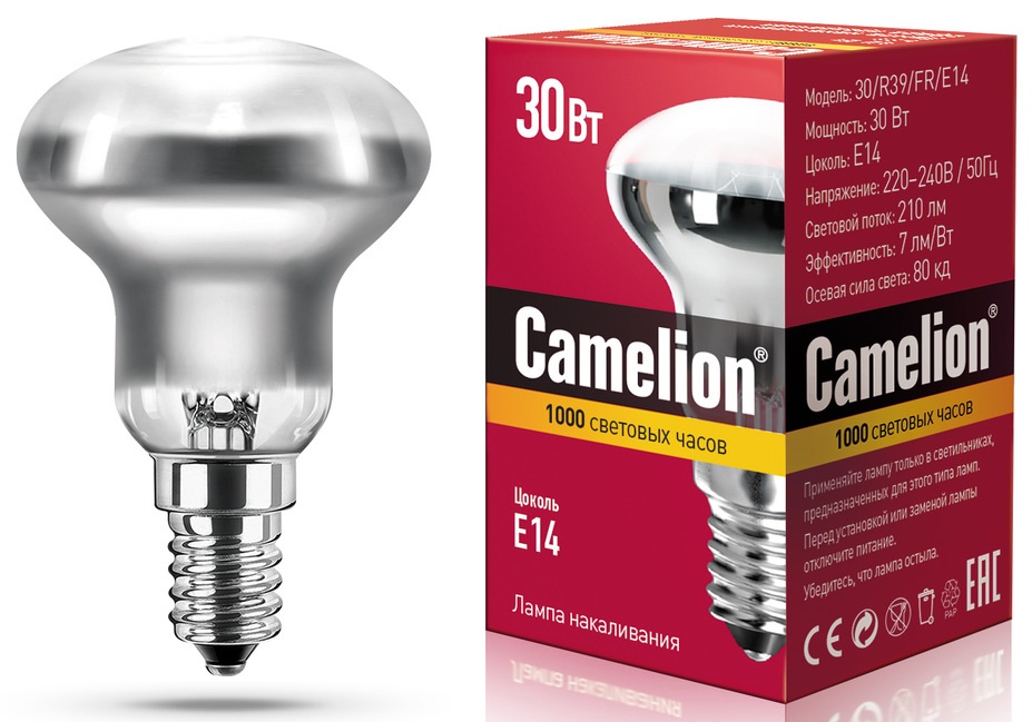 Лампа накаливания R39 30Вт Е14 матовая Camelion (100)