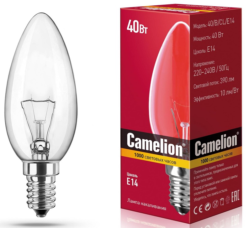 Интернет-магазин «Витрина 59» предлагает купить товар «Лампа накаливания свеча 40Вт Е14 прозрачная Camelion (100)» по цене: 4 765.00 руб. Артикул товара - 8968. Вы можете оформить заказ через интернет-магазин или по телефону +7 (950) 45-67-67-6. Дополнительную информацию о продаже товаров из каталога «Лампы» вы можете получить у нашего менеджера. Звоните!