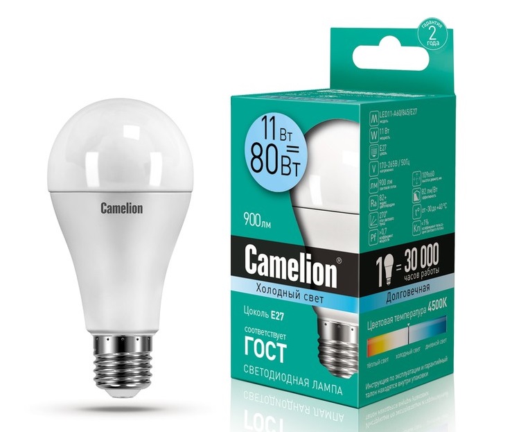 Лампа диодная A60 11Вт Е27 4500К 900Лм Camelion (10/100)