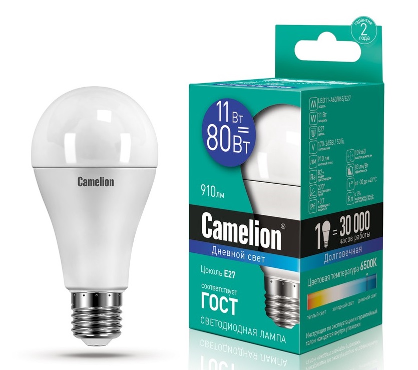 Лампа диодная A60 11Вт Е27 6500К 910Лм Camelion (10/100)