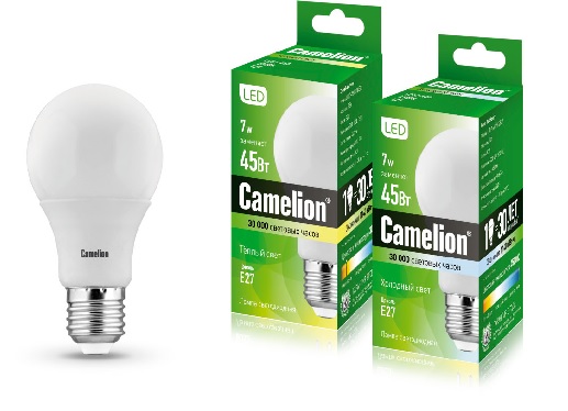 Лампа диодная A60 7Вт Е27 3000К 520Лм Camelion (10)