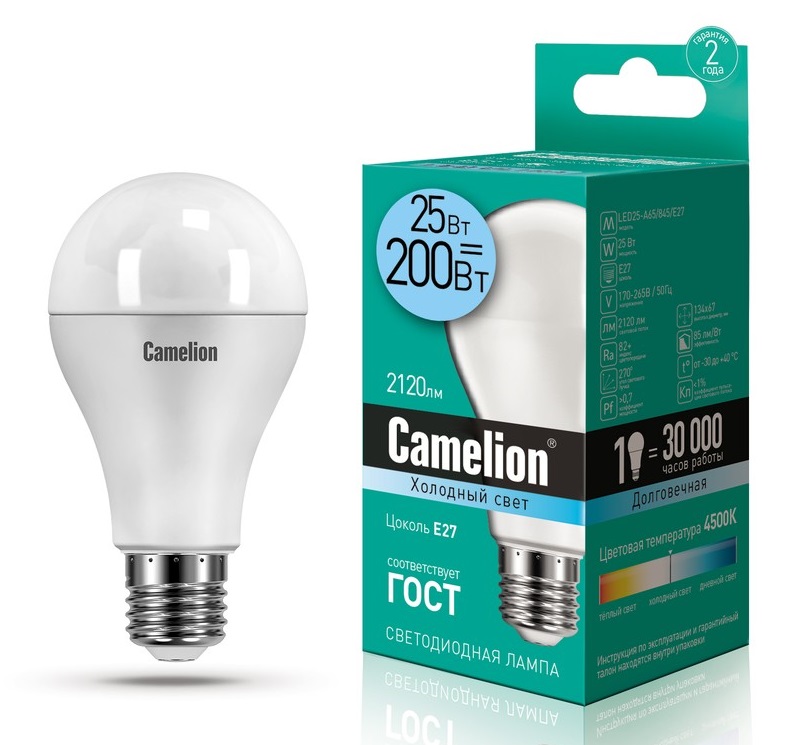 Лампа диодная A65 25Вт Е27 4500К 2120Лм Camelion (20/100)
