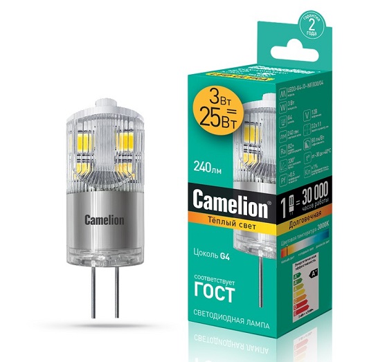 Лампа диодная G4 220В 3Вт 3000К 240Лм Camelion (10)