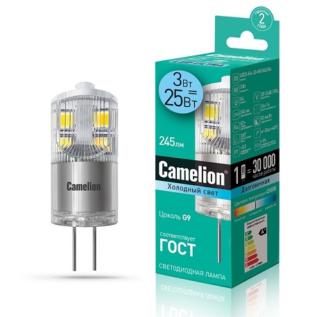Лампа диодная G4 220В 3Вт 4500К 245Лм Camelion (10)