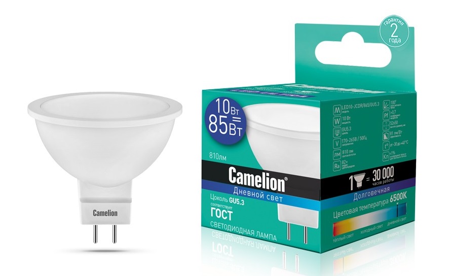 Лампа диодная MR16 GU5.3 10Вт 6500К 810Лм Camelion (10/100)