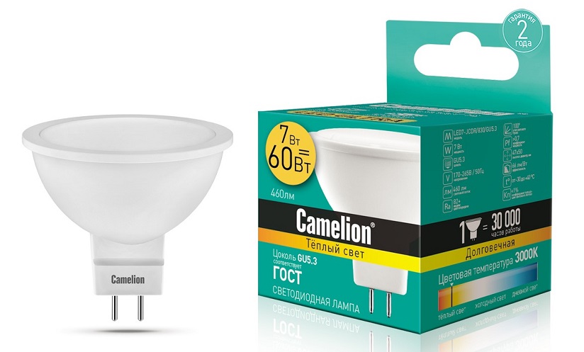 Лампа диодная MR16 GU5.3 7Вт 3000К 460Лм Camelion (10)