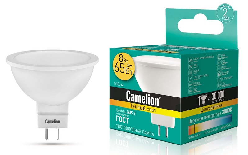 Лампа диодная MR16 GU5.3 8Вт 3000К 530Лм Camelion (10)