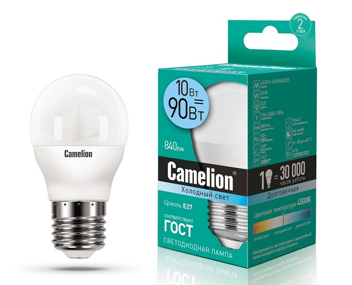 Лампа диодная шар G45 10Вт Е27 4500К 840Лм Camelion (10/100)