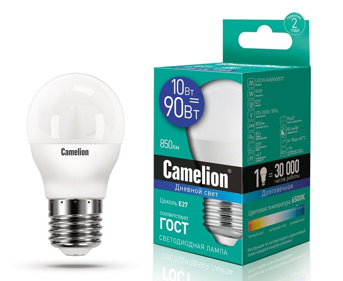 Лампа диодная шар G45 10Вт Е27 6500К 850Лм Camelion (10)