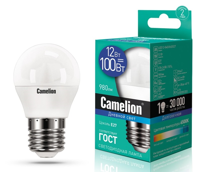Лампа диодная шар G45 12Вт Е27 6500К 980Лм Camelion (10)