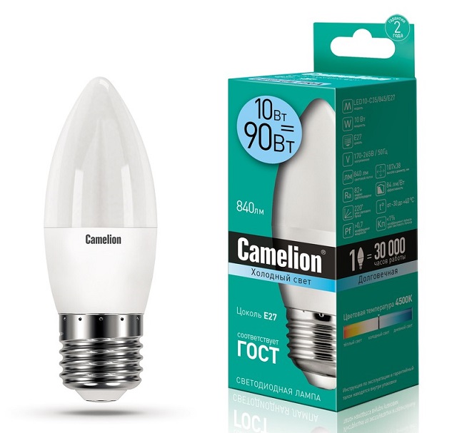 Лампа диодная свеча 10Вт Е27 4500К 840Лм Camelion (10)