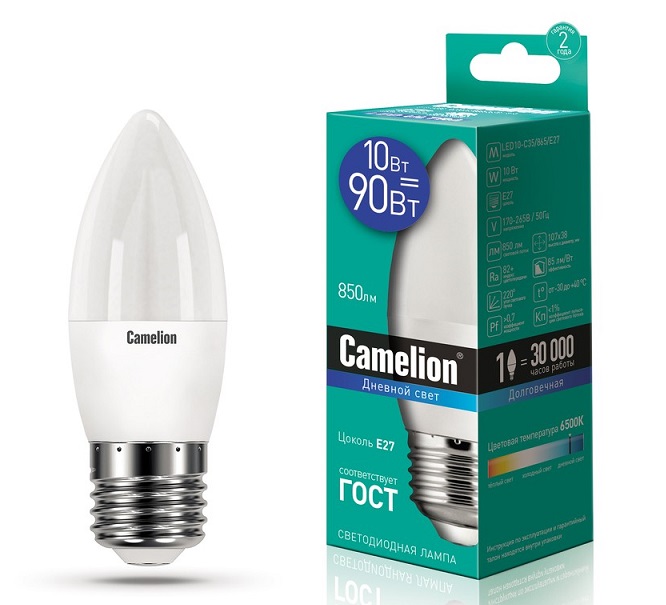 Лампа диодная свеча 10Вт Е27 6500К 850Лм Camelion (10)