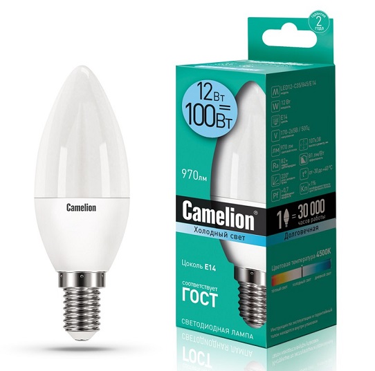 Лампа диодная свеча 12Вт Е14 4500К 970Лм Camelion (10)