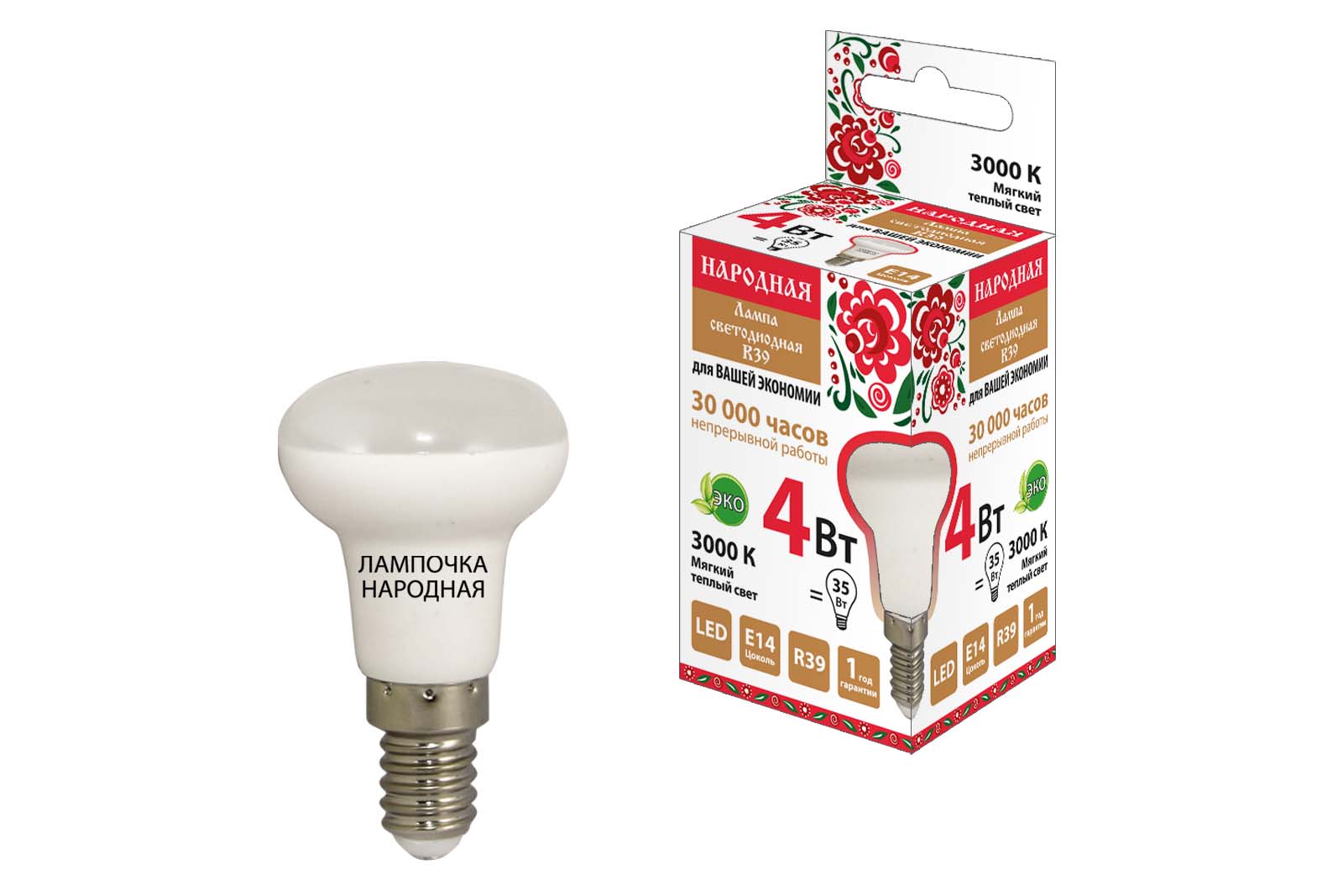 Лампа диодная R39 4Вт Е14 3000К 300Лм TDM Народная (10/100)