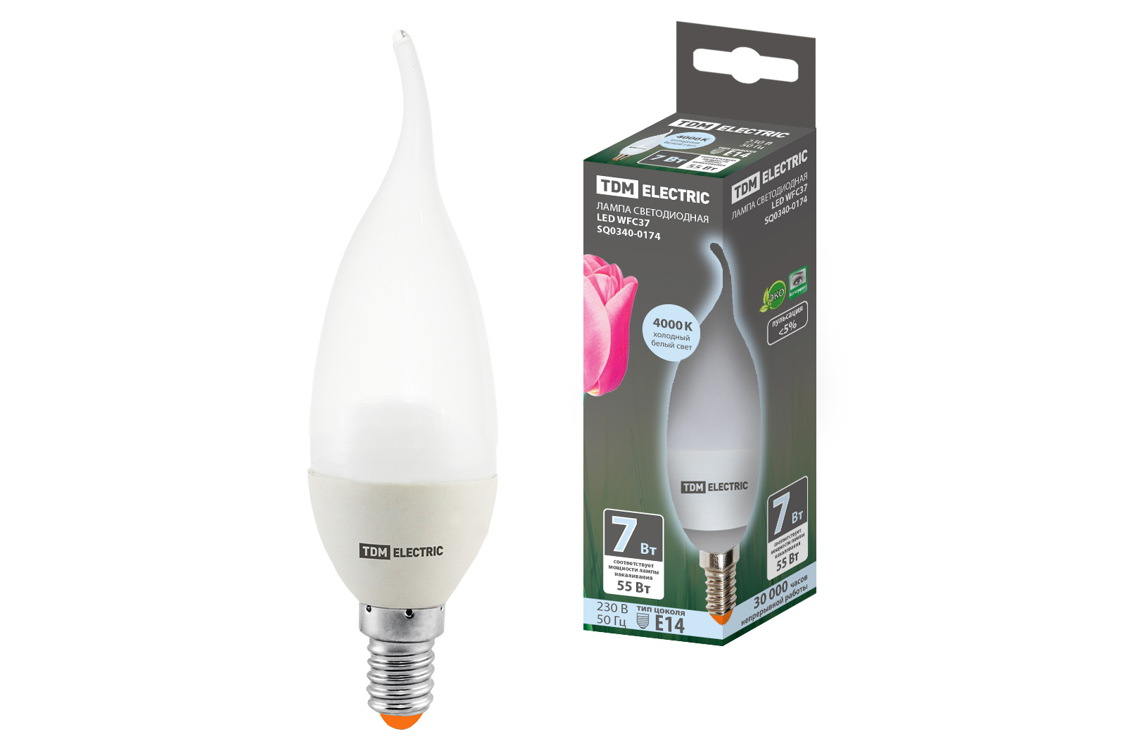 Лампа диодная свеча 7Вт Е14 4000К 560Лм TDM (10/100)